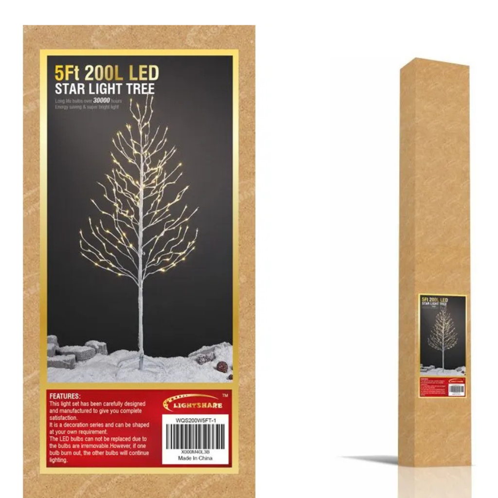 Árvore de Luz LED LIGHTSHARE 5 Pés — 200 LEDs Branco Quente