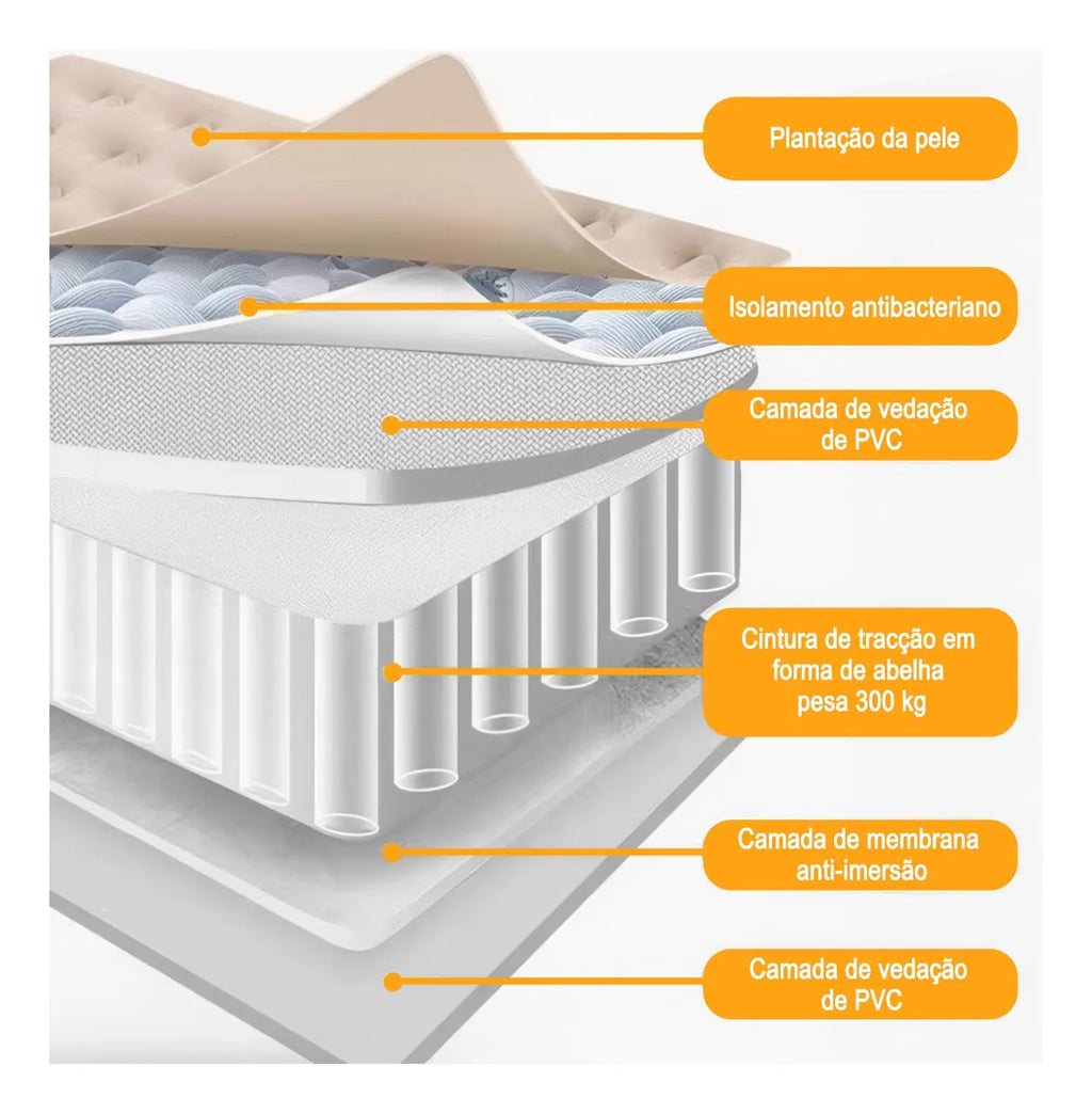 Acompanha bomba elétrica, 2 travesseiros e bolsa para transporte